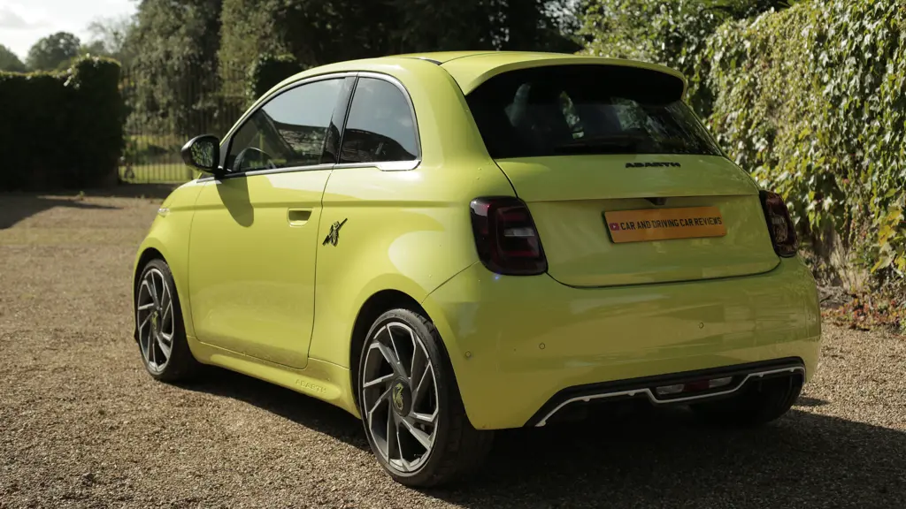 Pricing starts from around £30,000 upwards for the base fixed-top model; there's a £3,000 premium for the Cabrio version. You can get the fixed-top version in plusher 'Turismo' form from just under £34,000, with again, a £3,000 premium for the Cabrio, though by then you'd be spending around £37,000. Standard across the range is a 10.25-inch touchscreen infotainment system (with 'Performance Pages') and a 7-inch TFT instrument cluster display with dedicated Abarth graphics. the standard model also gets the Abarth Sound Generator and a JBL Premium Audio System. The 500e also gets an Abarth-branded version of the 'MyFiat' app, through which you can remotely interact with your car. Via this app, you can also schedule charging, find a public charger and check battery status. Stretch to the 'Turismo' version and you get 18-inch diamond-cut Titanium Grey alloy wheels, an alcanatara-trimmed dashboard and an alcantara and leather sports steering wheel. Plus heated front seats, a wireless charging pad, a rear-view camera with 360-degree sensors, heated mirrors and windscreen, keyless entry and go, and a blind spot warning system. A fixed glass roof is standard on the hatchback version of Abarth 500e Turismo.