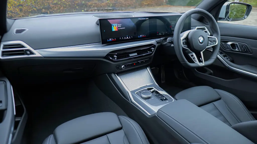 Visual changes to the Saloon and Touring body styles as part of this second G20-era 3 Series update are minimal: a more aerodynamic front bumper, more angular sills, fresh paint colours and, if you upgrade from the standard 17-inch alloy wheels, redesigned 19-inch alloy wheel rims. Inside, you might notice the redesigned steering wheel, the redesigned air vents along with the provision of fewer fascia buttons. And maybe also the smart 'cascade' interior lighting (adjustable for colour and brightness and able to indicate to the driver if they have an incoming 'phone call or have left a door open). Plus there's nicer Sensatec perforated fabric upholstery. The major cabin update here though, is the adoption of the brand's latest 'Operating System 8.5' software for the big 14.9-inch central touchscreen, which now controls all the climate functions and has a 'widget bar' that can be customised with the driver's favourite functions.There's also augmented reality for the navigation, 5G connectivity and a streamlined system to allow the car to connect to its MyBMW app. Plus, as with larger BMWs, you can now get the iDrive controller, the gear selector and the ignition button in 'Crafted Clarity' cut glass. As previously, there's a 12.3-inch instrument display. Otherwise, things are much as before. There's reasonably comfortable space for a couple of adults on the rear bench - it'd be a bit of a squash for three. Out back, there's a 480-litre boot in the Saloon (which falls to just 375-litres with the 330e PHEV), which you can extend by folding the seat backs forward. If you're going to be doing that very regularly though, then you're really a candidate for the alternative Touring estate version, which offers a 500-litre boot (410-litres with the 330e), extendable with seat folding to 1,500-litres.