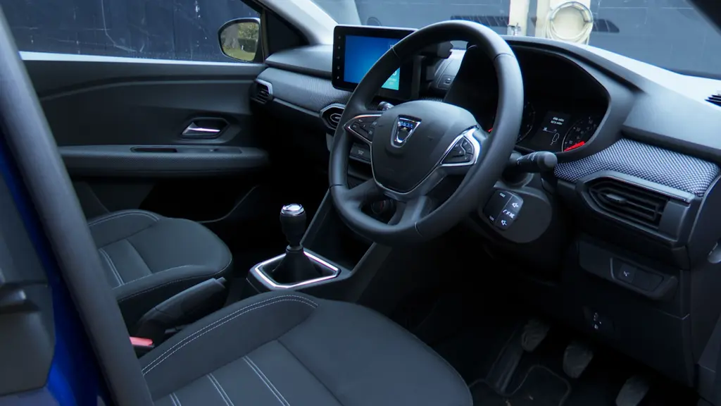 Sandero owners will continue to primarily choose this car with a 1.0-litre three cylinder petrol TCe engine, but now it produces 100hp (up from 90hp before). This core powerplant has that slightly off-beat feel that's unique to three-cylinder engines. And remains paired to the same 6-speed manual gearbox. This has a supremely light shift action, though can feel slightly rubbery and imprecise when you click the gears into each ratio. You can have a CVT auto as an option. The Stepway version can still be had with a 110hp version of this same TCe unit - and can also be ordered with the brand's hybrid 155 electrified powertrain. The hybrid 155 combines a 109hp 1.8-litre four cylinder petrol engine, two electric motors (a 50hp motor and a high-voltage starter/generator), a 1.4kWh battery (230V) and an automatic electric gearbox with four gears for the ICE engine and two others for the electric motor. Otherwise, all is as before, so the Sandero continues to ride on the same Renault Clio-derived CMF-B platform. The electric steering remains light and still doesn't offer any meaningful feedback, but it's precise and predictable enough for everyday driving, and the turning circle is usefully tight at 10.5 metres. You'll get a bit of extra wheel travel if you opt for the crossover-style Sandero Stepway model, but nothing else in terms of off road SUV engineering. So it'll be fine for school run kerbs but of course no use at all for any real off road shenanigans.