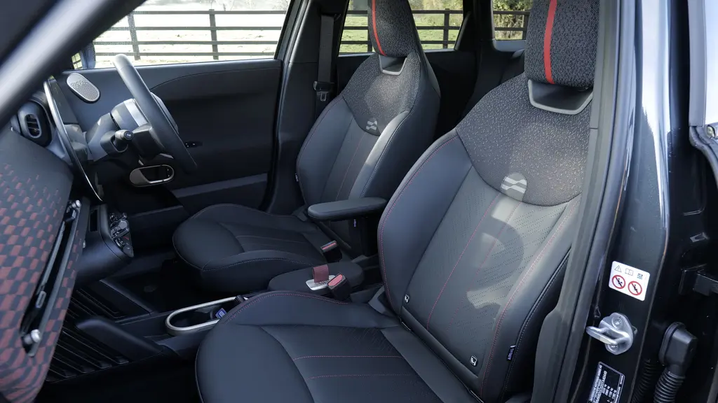 The reason most John Cooper Works MINI customers will be choosing this top Aceman will be to get the extra pair of rear doors that are missing on the ordinary MINI John Cooper Works hot hatch. But choosing an Aceman also means you get a cheeky crossover vibe thrown in too. MINI wants to ensure that this John Cooper Works model stands out, hence an exterior that builds on the design language of the standard model while showing a more aggressive appearance. The red, white, and black John Cooper Works logo - inspired by the chequered flag of motorsport - offers a nod to racing heritage, while gloss black trim is standard. Black side skirts, aero blades at C-pillar level and a rear spoiler optimise aerodynamics, while red vertical reflectors and diffusers contrast with the rear black apron. An aerodynamically optimised 19-inch wheel design in black with red accents is available exclusively for this all-electric model. Chili Red brake callipers sporting a white JCW logo and a Chili Red roof are standard, while a John Cooper Works specific multi-tone black to red roof is available optionally. The JCW tinsel continues on inside too, where there's plenty of red and black colouring, bespoke fabric for the sports seats and what MINI calls 'illuminated' headlining. The dashboard's upholstered in uniquely patterned red and black cloth and there's a grippy sports steering wheel with change paddles and a fabric strap. There's also bespoke trim for the doors. And extra JCW features for the 9.4-inch central touchscreen, including performance driving displays that include a G-Force meter and an accelerometer. Given that this Aceman is so much shorter than the next SUV up in MINI's range, the Countryman, there's a surprising amount of space in the back; a six foot passenger could sit behind a similarly tall driver. But that's because the designers have compromised a bit on boot space; there's just 300-litres of it (though that's 90-litres more than you'd get with this car's three-door MINI John Cooper Works Electric showroom stablemate). Fold the 60/40 rear bench and that extends to 1,005-litres. There's no under-bonnet 'frunk' space for the charging leads.