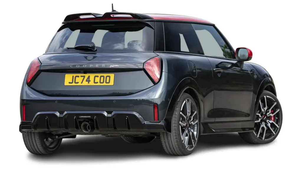 For a JCW MINI in this part of the market, customers have to have the 3-door body shape (or 2-doors with the Convertible). MINI wants to ensure that these John Cooper Works models stand out, so there's 2-tone black and red livery with bonnet stripes, a more open grille and a more aggressive bumper with air intakes across its flanks. In profile, you might note the red roof and the bespoke 17 or 18-inch JCW-specific alloy wheels which are wrapped in high performance tyres. At the rear, there's a more prominent valance with a central tail pipe, a humped roof spoiler and a chequered flag motif on the tailgate. The JCW tinsel continues on inside too, where there's plenty of red and black colouring, bespoke fabric for the sports seats and what MINI calls 'illuminated' headlining. The dashboard's upholstered in uniquely patterned red and black cloth and there's a grippy sports steering wheel with change paddles and a fabric strap. There's also bespoke trim for the doors. And extra JCW features for the 9.5-inch central touchscreen, including a power and torque converter, plus performance driving displays that include a G-Force meter and an accelerometer. Because there are no rear doors, it's predictably tight at the back. If you're looking at the electric version and want rear seat space in a small hot JCW MINI, there's always the Aceman JCW. Out back in the hatch, there's a small 210-litre boot. With the 60:40 backrest folded, there's 725-litres on offer. In the Convertible, there's either 215 or 160-litres, depending on whether the roof's up or down.