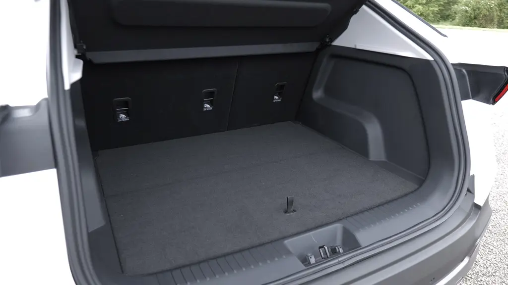 Compared to the petrol Omoda 5, this EV version has, according to manufacturer Chery, been 'optimised for aerodynamics'. Which means a unique rear spoiler, a bespoke front grille and modified front side wings. Omoda is determined that fashionable design should be a major selling point of its models, which is why you'd be unlikely to mistake this car for anything else. Certainly not the two cars this 4-metre-long compact family EV crossover is primarily pitched against, the Hyundai Kona Electric and the Kia Niro EV (both of which are a little shorter). The main visual talking point is a huge grille which is almost completely flush with the front bumper. The rear gets a full-width light bar and and an aggressive roof spoiler. All models have a rakish profile with blanked-out C-pillar. Inside, where everything is of surprisingly high quality for a mainstream brand, there's a now-larger high-mounted 12.25-inch infotainment screen. And a digital instrument cluster of the same size built into a single wide panel mounted on top of the dashboard. You're going to need to like smudge-worthy gloss black-trimmed panelling, but everything is decently screwed together and the things you interact with regularly are soft to the touch. Plus there's adjustable ambient lighting that varies itself with the selected drive mode. Despite the gently sloping rear roofline, there's plenty of headroom in the back, even with a sunroof fitted. And decent leg room for six-footers too. Out back, there's a 380-litre boot. The trunk area lacks bag hooks but gets a low loading lip, so it's easier to slide heavy items in.