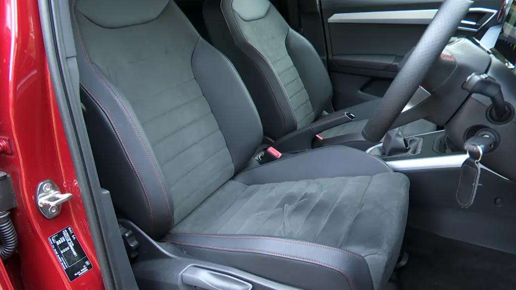 Not too much has been done visually as part of this second refresh but even so, the Arona still looks remarkably up to date, especially for a design that's been on sale since back in 2017. As part of this second facelift, SEAT has given the car a revised front end that incorporates a new hexagonal grille design, smarter full-LED headlights and a redesigned bumper. The rear bumper's been freshened too - as have the alloy wheel designs. As before, the three-dimensional look is quite pronounced, without being too aggressive. Like its rivals, this car is trying to give the feel of being a sturdy car for everyday life for the urban jungle. In terms of its dimensions, the Arona is 4,138mm long, which is 79mm more than an Ibiza. However, the real difference lies in its height, as the Arona is 99mm taller. As a result, this SUV offers not only higher ground clearance for any off-road adventures, but also more front and rear headroom, and, above all, a larger boot, with a 400-litre capacity. Another important feature is the seat cushion, which is 52mm higher and gives a dual advantage. Firstly, a higher driving position for raised view of the road ahead. And secondly, it makes it much easier to get in and out of the car. The passenger seats are also 62mm higher than they would be in an Ibiza, while headroom is 37mm greater in the front and 33mm in the rear. The suspension height has been increased by 15mm and the windscreen is slightly more vertical for a roomier interior. As for the interior update changes, well they're as light as those outside. The seats have been redesigned and the central screen has a new operating system. There's nicer finishing for the upholstery, the headliner and the air vents; that's about it. Still, if in these days of de-cluttered interiors, you yearn for a return to cabins with plenty of tactile physical buttons, this cabin will suit you just fine. And it's very well put together. Through the leather-stitched wheel, you view an 8-inch digital instrument cluster that's customisable with upper specs. And an 8-inch centre screen, which can be upgraded to 9.2-inches if you spend more. Both monitors get SEAT's usual 'Full Link' connectivity system. Sporty 'FR' trim gets well-padded and supportive bucket seats.