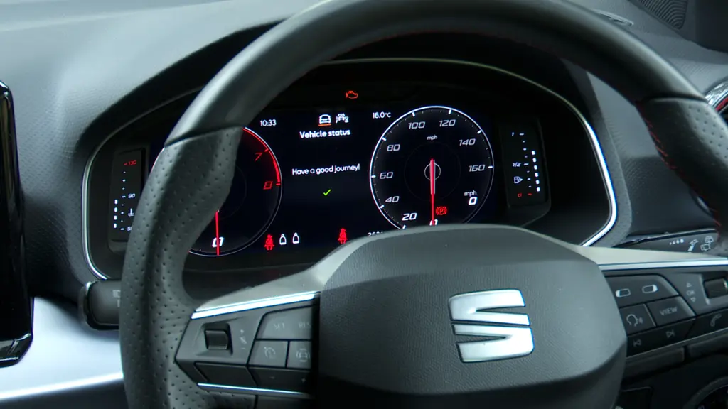 Prices haven't changed much, which means figures starting from around £21,000 and ranging up towards £30,000. The range of trim options has been slimmed down from eight to four options - 'SE', 'SE Tech', 'FR' and 'FR Sport'. Wheel options range from 16 to 18-inches in size. Standard kit across the line-up includes full-LED headlights, LED tail lamps, cruise control, air conditioning, rear parking sensors, an 8-inch digital cockpit instrument screen and an 8.25-inch central touchscreen (upgradeable to 9.2-inches further up the range). There's a new optional SEAT Sound system with six speakers, a subwoofer, and a 300W amplifier for a high-fidelity audio experience. And with upgraded 15-watt wireless fast charging with refrigerated technology, staying connected and powered up on the go is easier than before. And there's now a selection of more vibrant and youthful colours. Liminal Red, Oniric Grey, and Hypnotic Yellow join the existing range. The standard safety rosta is much as before. Which means Front Assist emergency braking with pedestrian and cyclist protection, Lane Assist, Traffic Sign Recognition, Attention & Drowsiness Assist - and all the usual airbags. The camera stuff is accessed via a new ADAS menu accessed via the steering wheel buttons.