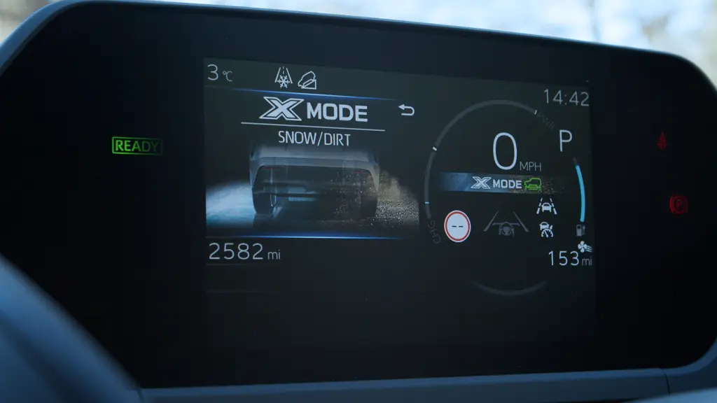 There are various powertrains available, all of which feature new eAxles that claim to provide greater power with higher efficiency. For the mainstream SUV body shape, things kick off with a new entry-level front-driven variant, which has a single motor with 165hp energised by a 57.7kWh battery offering a 275 mile range. This base version gets to 62mph in 8.6s en route to a top speed of just 87mph. Most though, will opt for a bZ4X with the bigger battery, now rated at 73.1kWh and available with either front or four-wheel drive. The front-driven version puts out 221bhp and offers a 352 mile range, with 62mph possible in 7.4s en route to 99mph. Choose to have the 73.1kWh battery in concert with weightier dual motor AWD and range falls to 314 miles, but because output rises to 338bhp, the 62mph sprint time lowers to 5.1s. It's worth pointing out that the alternative body shape, the bZ4X Touring estate version, uses a slightly different 74.4kWh battery pack. A front-driven Touring mates that to the usual 221bhp motor, but the dual motor AWD Touring model puts out more power than any Toyota EV has to date - 376bhp. With both body shapes, the dual motor versions use the four-wheel-drive system the brand developed with Subaru. That set-up is called X-MODE and is supposed to give the bZ4X what the brand calls 'class leading off roading driving capability'; which is presumably what Subaru felt they needed for their version of this car, the Solterra. The dual motor versions have 'X-MODE' branded 'Snow/Dirt' or 'Deep Snow/Mud' drive settings that give this EV an unusual level of capability on the slippery stuff. There have been a few handling changes to this updated model, centred around tweaks to the front subframe and extra adhesive in the floor to increase chassis rigidity. In addition, the springs, dampers and bushings have all been retuned to make the ride feel more settled, especially for rear passengers. Plus measures have also been introduced to further reduce noise and vibration for an even more peaceful cabin environment. Whether you order your bZ4X with front or four-wheel drive, you'd expect selectable brake regen settings, which can now be operated by steering wheel paddleshifters and which still include a 'Regeneration Boost' feature, which slows your off-throttle progress by up to 0.15g, in the process harvesting more energy to recharge the battery as you drive. This Toyota needs that, given that its mileage range figures are still hardly class-leading, but in terms of refinement and ride quality, it remains up with the class leaders.