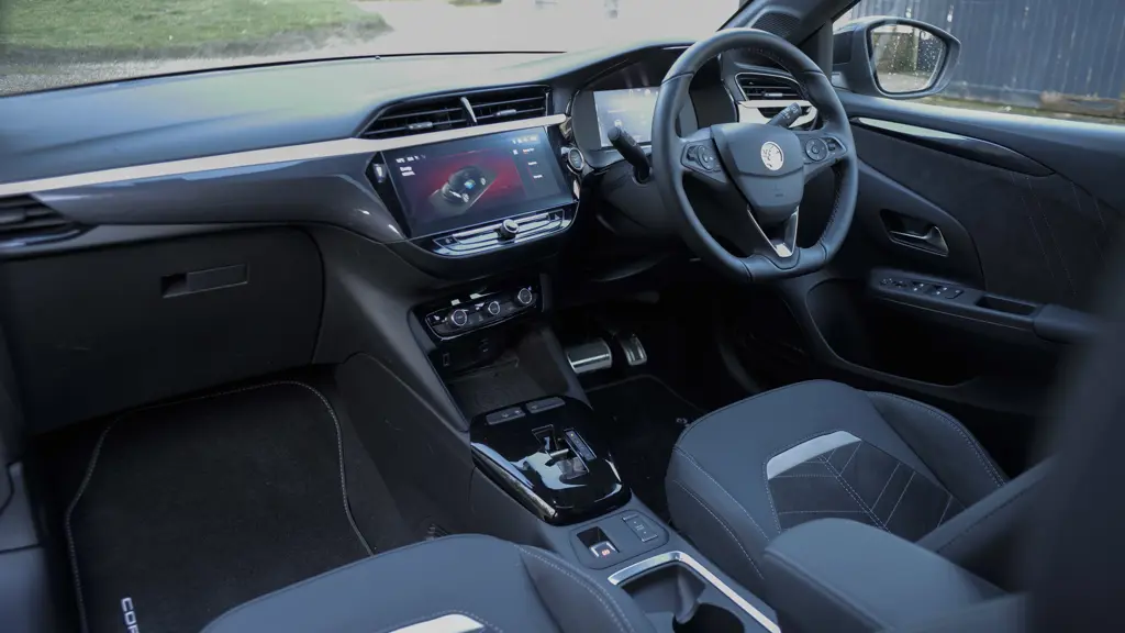 For this Corsa Electric, as with the combustion model, there are four mainstream trim levels - 'YES', 'Design', 'GS' or 'Ultimate' - and you'll be paying in the £27,500 to £35,000 bracket. From the asking price, you can deduct a £1,500 Electric Car Grant. With all trim levels, there's the choice of either the old 136PS powertrain; or there's the option of finding around £1,400 more for the 156PS 'Long Range' powertrain. It's worth referencing the fact that these days Vauxhall can also sell you a Hybrid-powered Corsa, which in town at least, can run much of the time on electrical energy; and that variant's much cheaper. The e-DCT6 Hybrid model in question (which is auto-only) starts from around £23,000 in 100PS form and sells across the same three trim levels. Both the Corsa Electric and its cousin the Peugeot E-208 make more sense as EVs than another key Zero Emissions small car rival at this price point, the MINI Electric. That MINI's priced at about the same level as this Vauxhall, but has a much lower operating range in base 40.7kWh form, a three-door-only body style and a tiny boot - plus it would probably cost around £3,000 more when equipped to a similar standard. A battery-powered family hatch like a Kia Niro EV or a Hyundai Kona Electric would cost from around £35,000, but both of those are slightly larger cars. Standard kit across the range is generous. Mid-range 'GS Line' gives you LED headlights, a 10-inch Multimedia Navi infotainment screen with built-in navigation and 'Apple CarPlay' and 'Android Auto' smartphone-mirroring. Plus there's a 7-inch digital instrument cluster, electronic climate control, sports alloy-effect pedals and 17-inch black alloy wheels. Top 'Ultimate'-spec gets you a 10-inch centre screen and a contrast-coloured black roof, plus 'IntelliLux' adaptive LED Matrix headlights. Along with keyless entry, heat for the front seats and steering wheel, part-alcantara upholstery, a centre front armrest that includes storage, a wireless 'phone charger, plus a driver's seat with massaging and lumbar support.