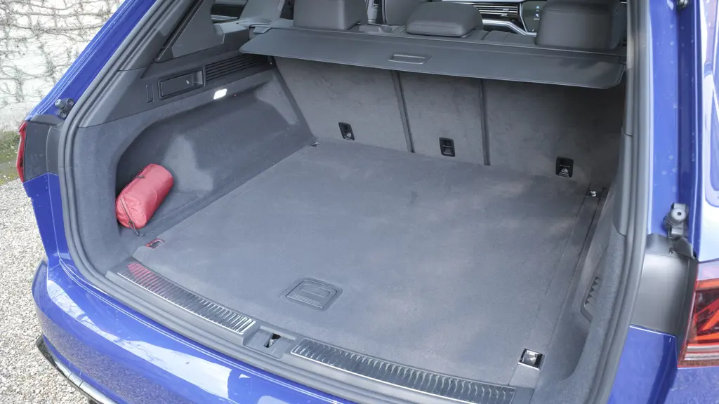 This third generation Touareg has been lightly facelifted, with larger lower front bumper air ducts and revised headlights with can be embellished with Volkswagen's IQ Light HD matrix system, incorporating up to 19,216 micro-LEDs per unit. Base 'Elegance'-trimmed models get chrome exterior trimming, while sportier 'R-Line' spec swaps that for a black-themed look. There are revised tail lamps too with smarter graphics; and they're connected by a light bar, in the centre of which is an illuminated Volkswagen logo. Smarter wheel designs of between 19 and 21-inches complete the changes outside. As before, this MK3 Touareg is an imposing thing, nearly 4.8m long, nearly 2.2m wide and over 1,7m high. Under the skin, as before, sits the Volkswagen Group conglomerate's MLB Evo platform (shared with the MK2 Audi Q7, the Audi Q8, the Bentley Bentayga, the MK3 model Porsche Cayenne and the Lamborghini Urus) There are fewer changes to this updated third generation Touareg inside. As before, the cabin isn't quite up to Audi and Porsche levels of quality, but it feels very nice indeed and is dominated by what Volkswagen calls its 'Innovision Cockpit', this set-up standardised for this facelifted model. It includes a 12-inch instrument display paired with a 15-inch central infotainment screen. The latter has had software and functionality updates which have brought more advanced HD map data, plus an updated voice control system and wireless 'Apple CarPlay/'Android Auto' smartphone-mirroring. Otherwise, everything's as you were. You sit more commandingly than is the case with some other large luxury SUVs, surrounded by mood lighting, beautifully stitched finishing and a cool, classy Teutonic ambiance. Detail differences with this improved model include higher-capacity 45W USB-C charging ports and smarter cabin ambient lighting. As before, the Touareg offers only one rear seating row. But if that's OK for you, you'll find a comfortable back seat with sliding and seat reclining options - the backrests recline in three stages back to an angle of up to 21-degrees for greater comfort on longer journeys. And the relatively low height of the centre transmission tunnel means that three adults can be accommodated without too much discomfort for the occupant who's drawn the short straw and gets stuck in the middle. Luggage space is huge, with a 1,051mm load area length and a maximum load capacity of 810-litres (seats up) or 1,800-litres (seats down). Those figures fall to 655-litres and 1,675-litres with the PHEV models.