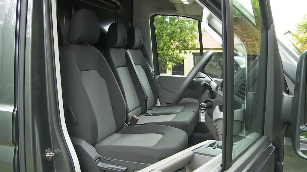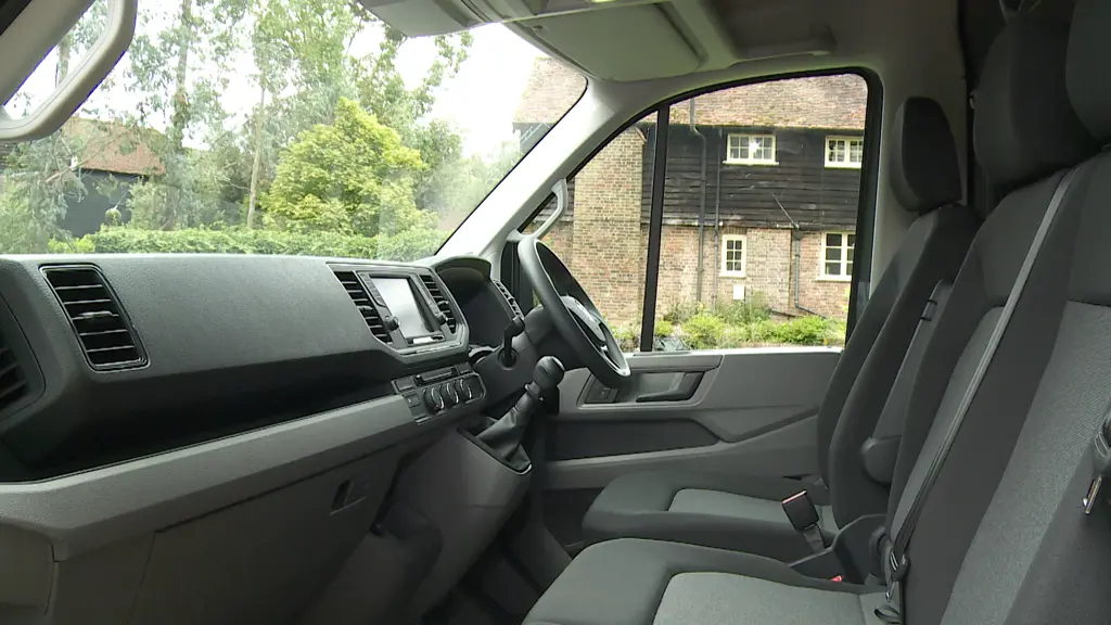 Not much has changed about the look of this updated SZ-series second generation Crafter. Not much needed to - which is more than could be said of some of this model's predecessors. Big Volkswagen LCVs of old really were very ugly indeed - we're thinking of the original LT of 1975, the LT2 of 1996 and the original 2F-series Crafter model of 2006. Fortunately, when this SZ-series model arrived in 2017, it was a lot easier on the eye, with wide horizontal front end lines and a raked back windscreen. There are three body lengths, this 5,986mm medium wheelbase version, the 6,836mm-long long wheelbase variant and the lengthiest 7,391mm long wheelbase Maxi derivative. There are 16-inch or, as in this case, or 17-inch wheels. The height of the bluff rear end depends on your choice of roof levels - low, High (which is what we have here) or Super-High. Climb up behind the wheel and you're faced with what Volkswagen calls an 'intuitive state-of-the-art cockpit landscape', fitted to what still remains the highest quality cabin in the segment. Inevitably, that means a screenfest, with digital instruments for the first time, controlled via buttons on the new multifunction steering wheel. Using these, you can change the screen format - from dials to info boxes - and also select full-screen mapping if navigation's been specified. The 10-inch centre monitor's also new - with a homescreen that can display either with customisable 'widget' boxes or with rows of little icons. On-board Wi-Fi, online voice control and various VW Car-Net online functions can be optionally added. A Crafter regular might also recognise the restyled gear selector and the addition of an electronic handbrake. More powerful USB-C sockets now proliferate - there are two low down to the left of the gear stick and one on the dash top. And as you'd expect in this class, the backrest of the middle seat folds down to create a work surface, with cup holders, pen trays and a securing strap for paperwork. You'll have to do without that of course if you swap the two-person bench out for a single seat. The driver's seat is multi-adjustable and with plusher trim, comes with an armrest; we'd want to upgrade to the more supportive ergoComfort chair which can even be massaged. Once you're comfortable, there's plenty of space for all your odds and ends, with storage spaces aplenty.